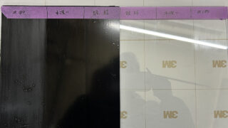 試験 ガラス面とカッティングシートへの塗装の密着試験